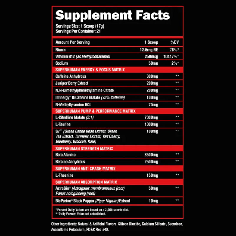 Add these to the already incredible SuperHuman ingredients present and you have an unparalleled MAX DOSED pre-workout experience: