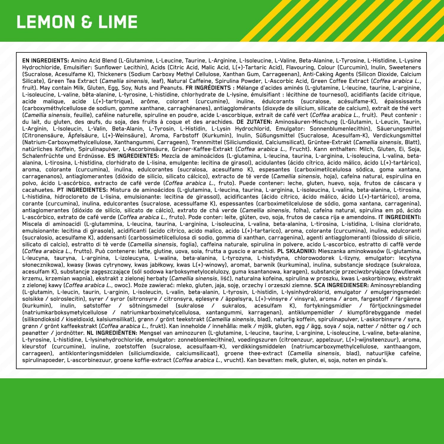 Each 9 g serving (approximately two scoops) provides a blend of essential and non-essential amino acids, including L-Glutamine, L-Arginine, Taurine, Beta-Alanine, and L-Tyrosine, plus 2 g of branched-chain amino acids (L-Leucine, L-Isoleucine, and L-Valine). The caffeine component is derived naturally from green tea and green coffee extracts, delivering 100 mg per serving for a clean, sustained lift.