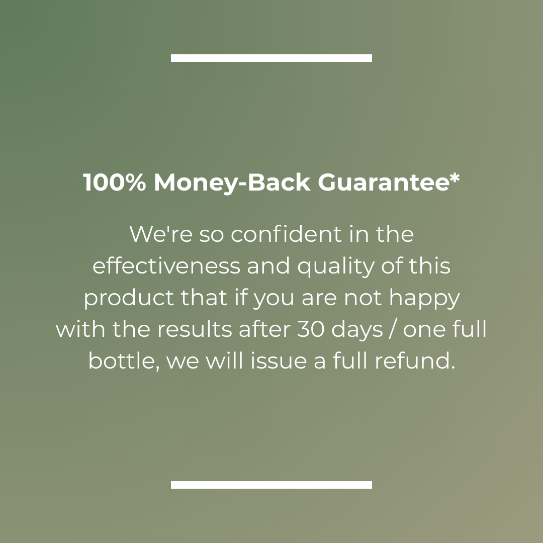 We're so confident in the effectiveness and quality of this product that if you are not happy with the results after 30 days / one full bottle, we will issue a full refund.