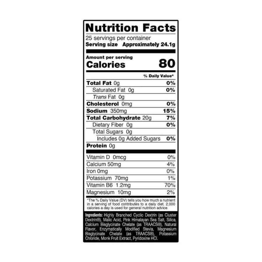 We decided to source the sodium from Pink Himalayan Sea Salt, which is free of additives and naturally contains up to 84 different minerals in trace amounts.