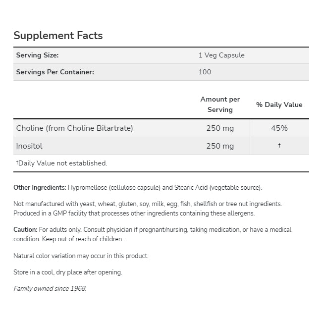 Choline and inositol are members of the B-vitamin family. Choline is necessary for normal synaptic transmission, brain health, and fatty acid metabolism in the liver.* Inositol is also essential for brain and nervous system health.* Both choline and inositol are essential components of all cell membranes.*