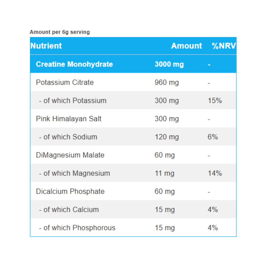 - 3g Creatine Monohydrate: Boosts muscle power and endurance.