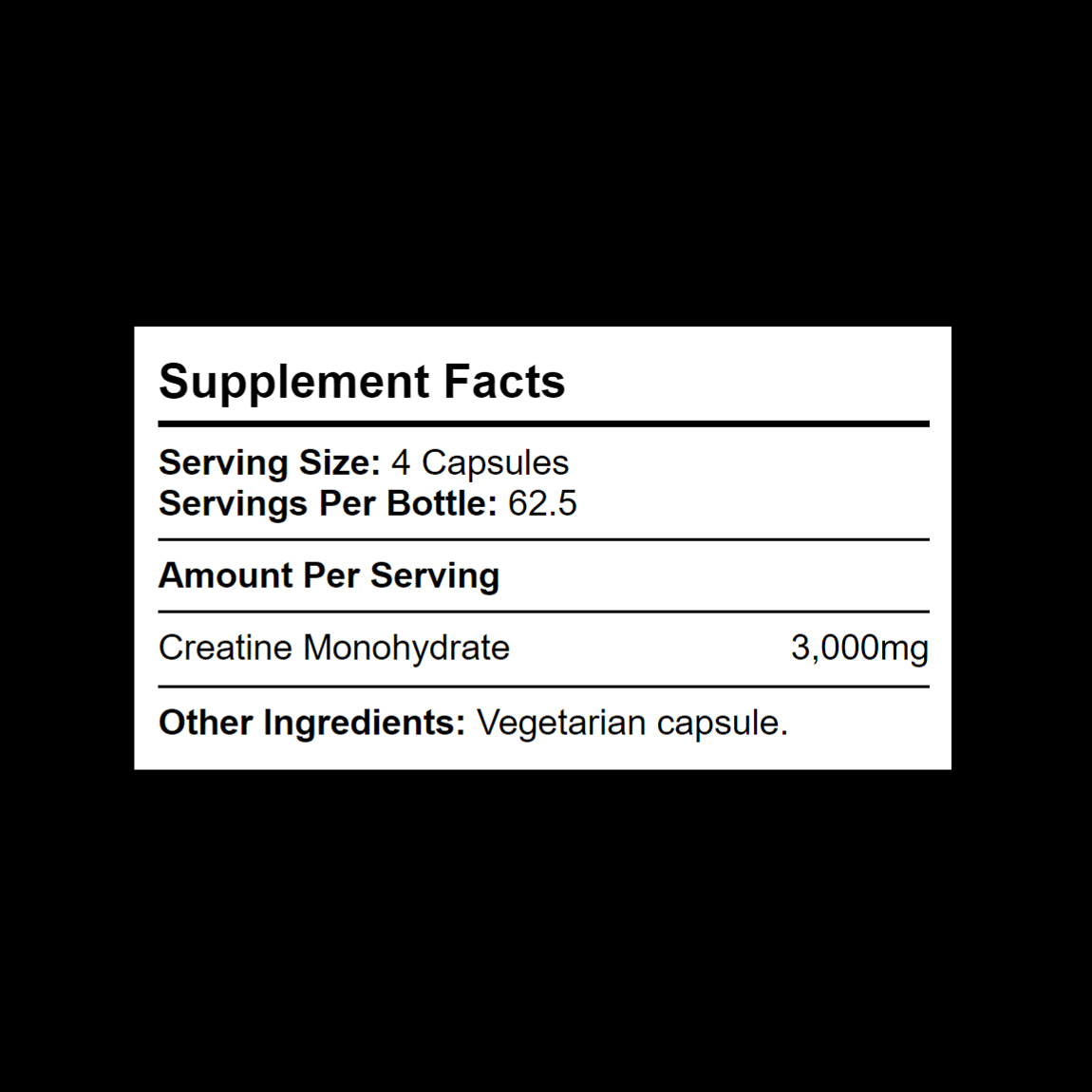 - 3,000mg creatine monohydrate per serving