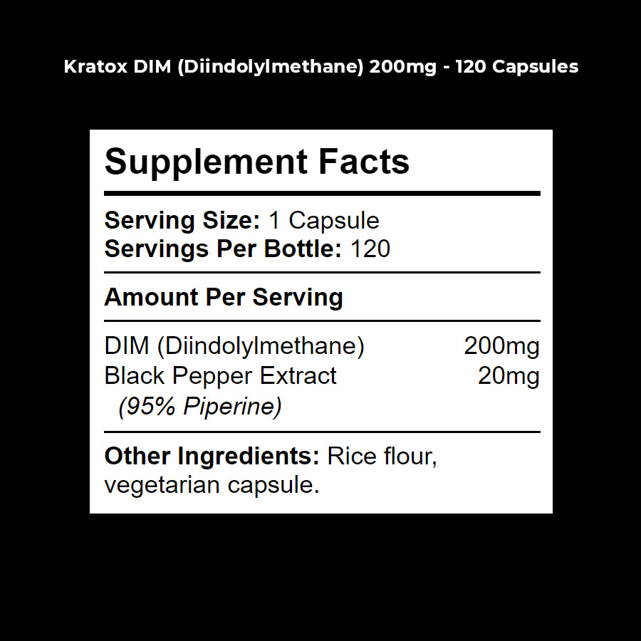 As with all Kratox supplements, our DIM is made using only the highest quality raw ingredients and is free from unnecessary additives such as fillers, binders, colours and preservatives.