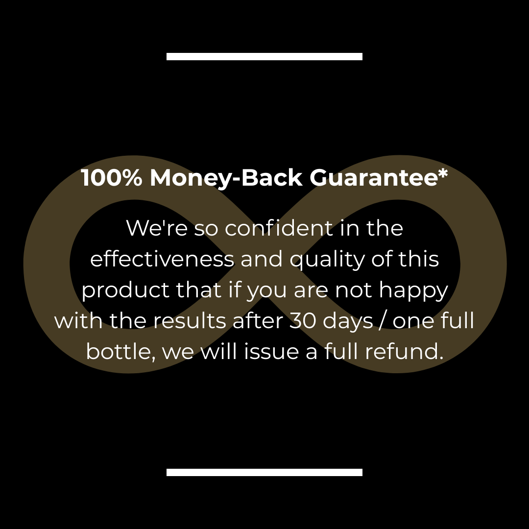 We’re so confident in the effectiveness and quality of this product that if you are not happy with the results after 30 days / one full bottle, we will issue a full refund.