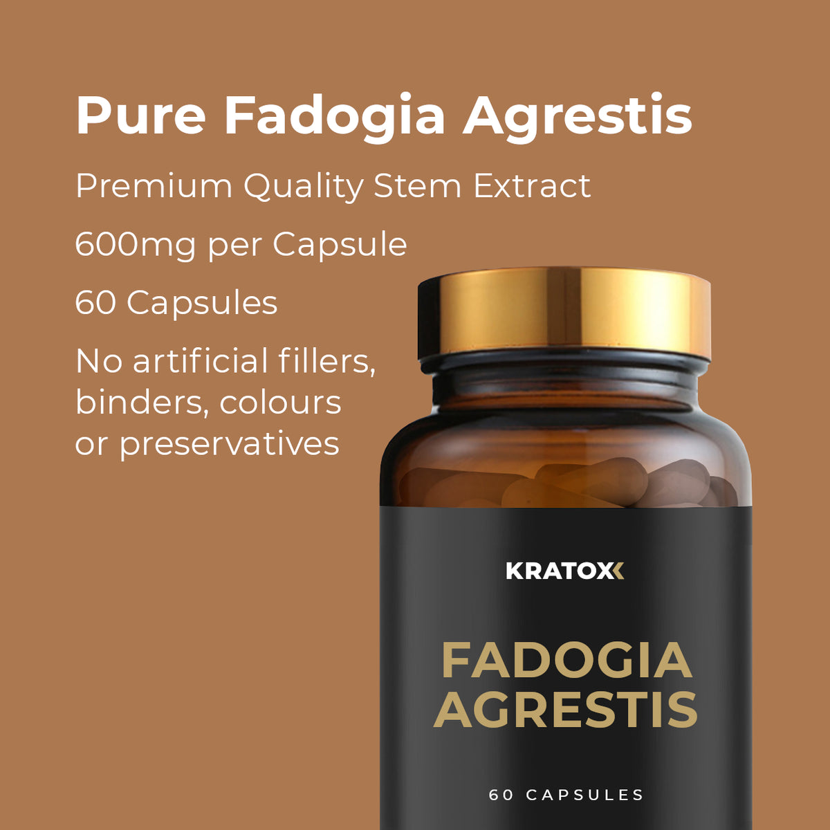 - Kratox Fadogia Agrestis 600mg: Take 1 capsule daily