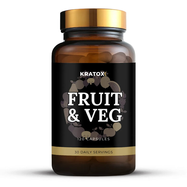 Kratox Fruit & Veg is a premium whole-food supplement made from 36 real fruit and vegetable ingredients, all in a convenient capsules with no added fillers or preservatives.
