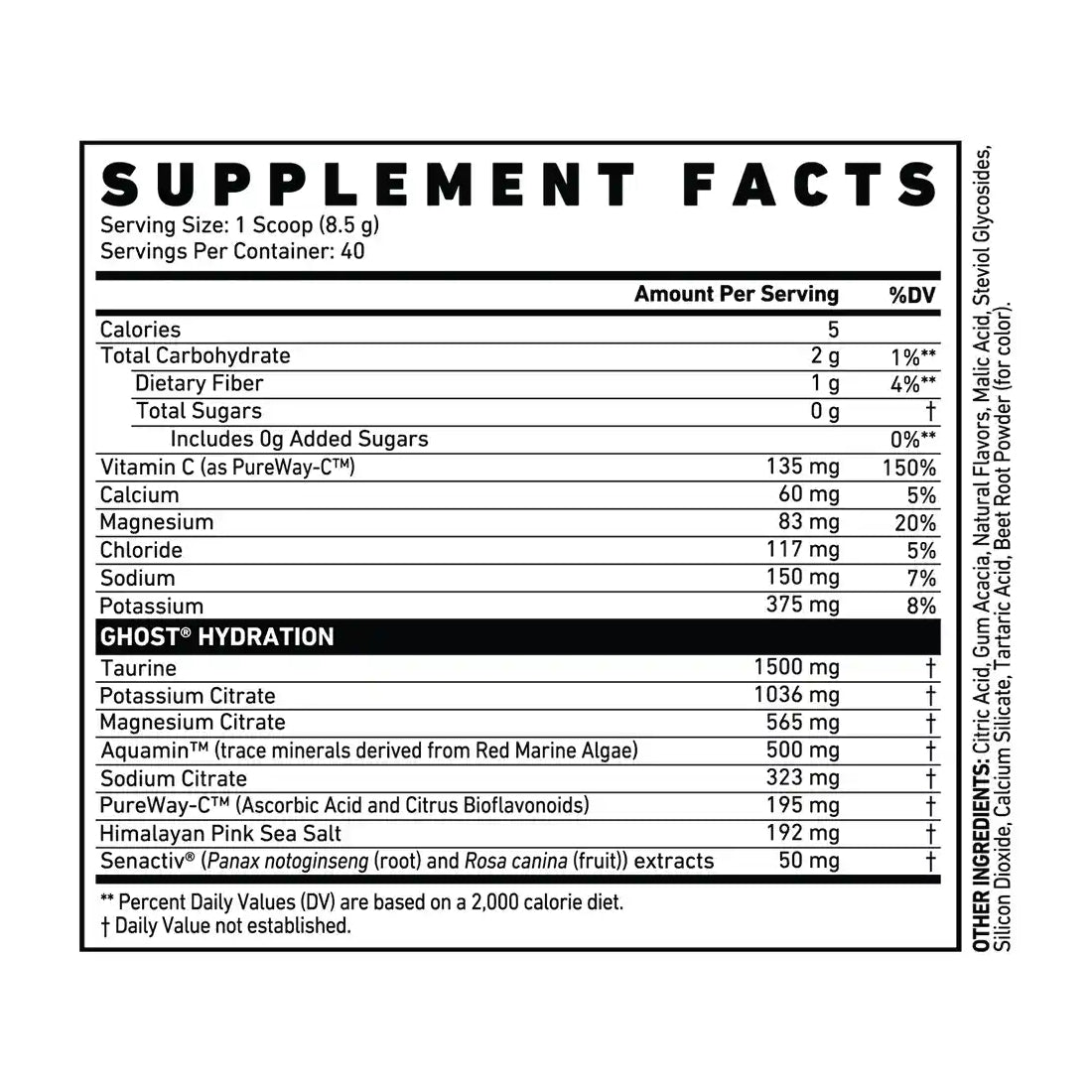 Ghost Hydration combines a potent blend of sodium, potassium, and magnesium to help replenish lost electrolytes and maintain optimal fluid balance. Whether you're sweating it out at the gym, recovering after an intense workout, or simply staying refreshed throughout the day, this formula ensures your hydration is on point.