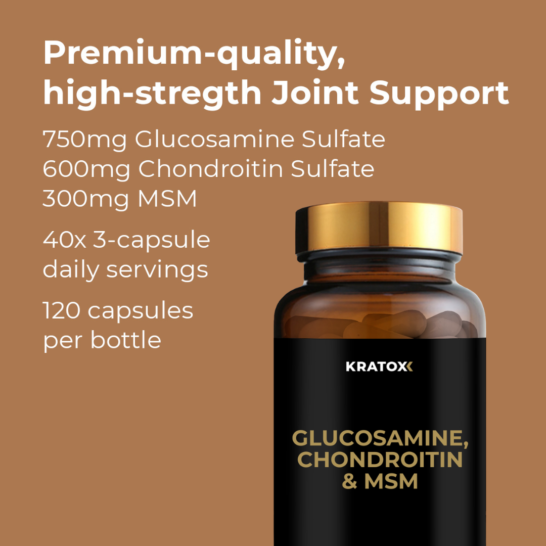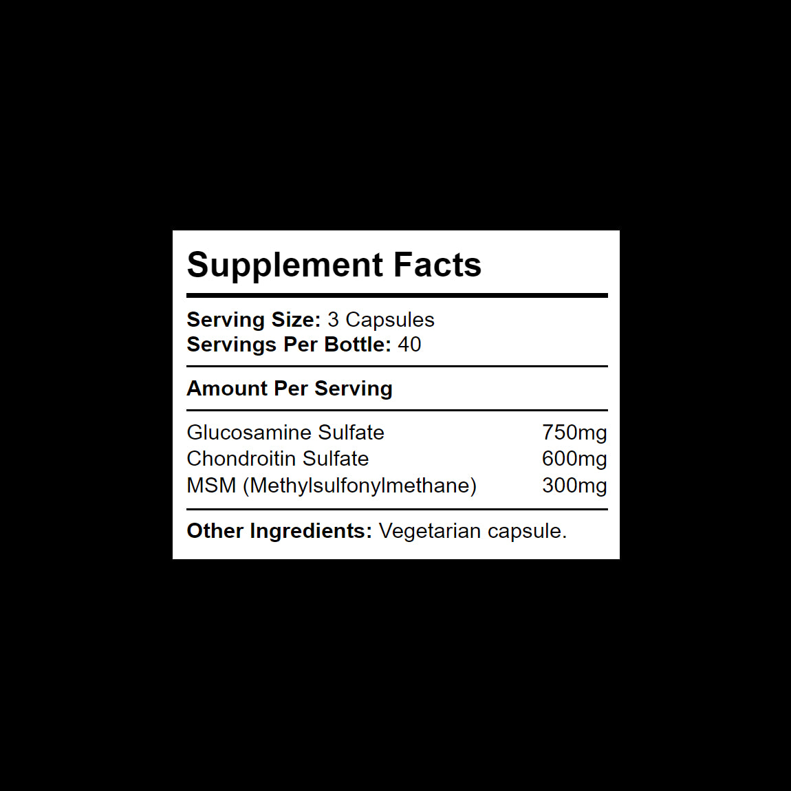 Our joint supplement combines three powerful ingredients: Glucosamine, Chondroitin, and MSM, designed to provide comprehensive support for joint health. Glucosamine plays a crucial role in maintaining the integrity of cartilage, the tissue that cushions joints, helping to ease pain and stiffness. This makes it ideal for individuals looking to alleviate the discomfort associated with arthritis or everyday joint wear and tear.