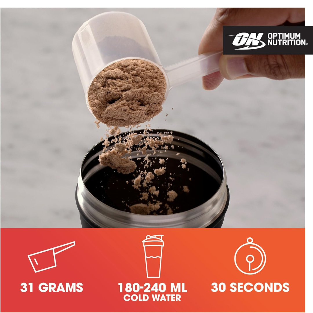 Gold Standard 100% Whey is a fast-absorbing product so it is best enjoyed first thing in the morning and/or within 30 minutes of your training. Simply mix one rounded scoop with 180-240ml in a shaker of water (or your favourite beverage).