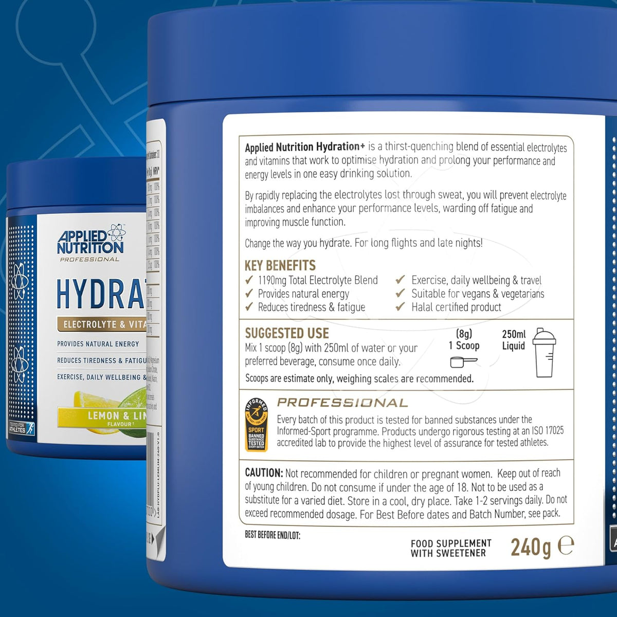 Applied Nutrition Hydration+ Powder is a premium supplement crafted to support hydration and deliver vital vitamins and minerals. This convenient, easy-to-mix powder is designed to maintain electrolyte balance, enhance energy levels, and promote overall wellness. Whether you're an athlete, fitness enthusiast, or simply in need of a hydration boost, Hydration+ is the ideal solution for your daily needs.