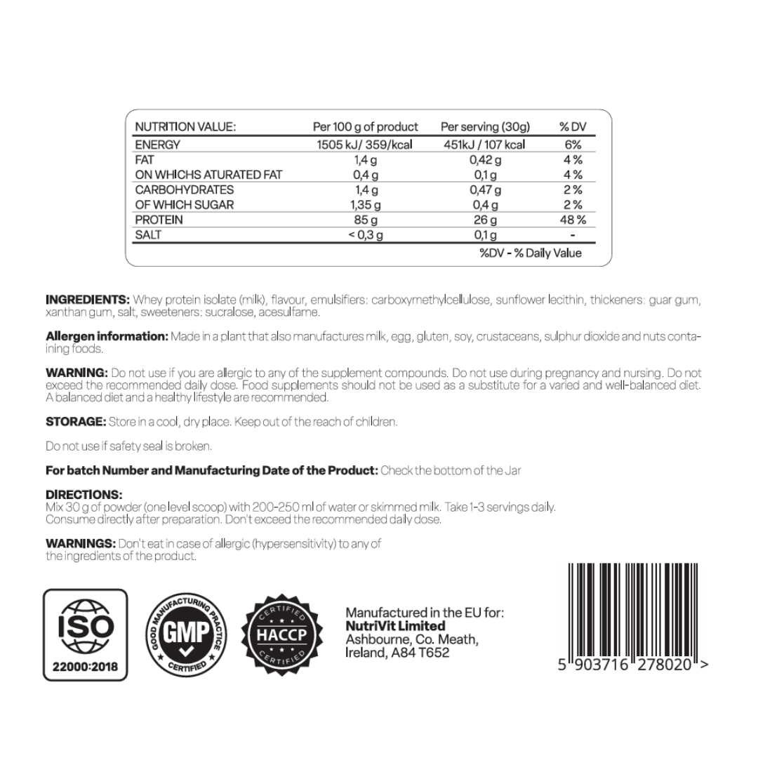 - High-quality whey protein isolate