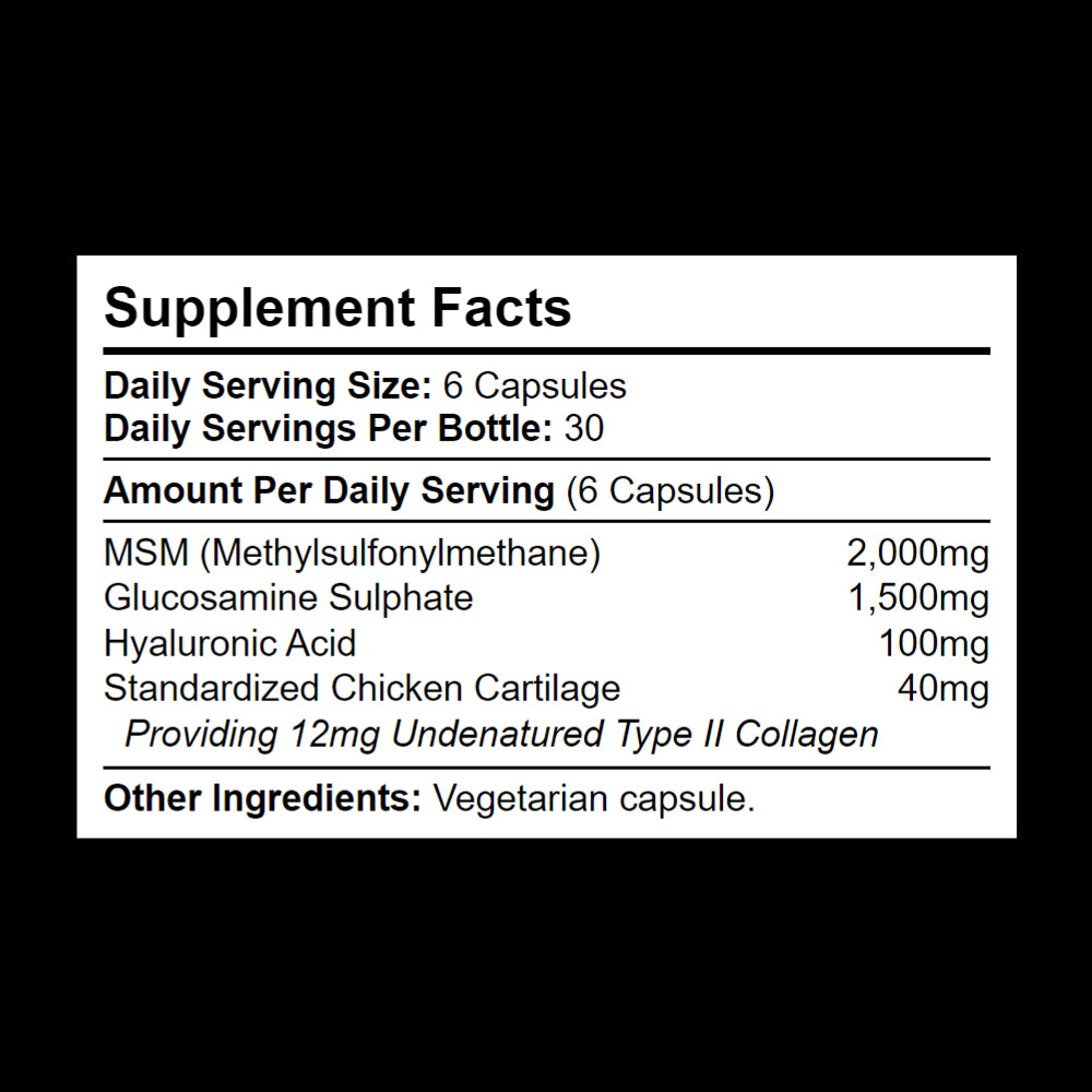 Premium quality Joint Support supplement using precise dosages of high-quality, proven ingredients, with no artificial fillers, binders, colours or preservatives.