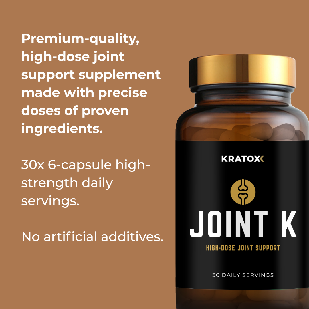 As with all Kratox supplements, Joint K is made using only the highest quality ingredients at proven dosages and made with no artificial colours, binders, fillers or preservatives.