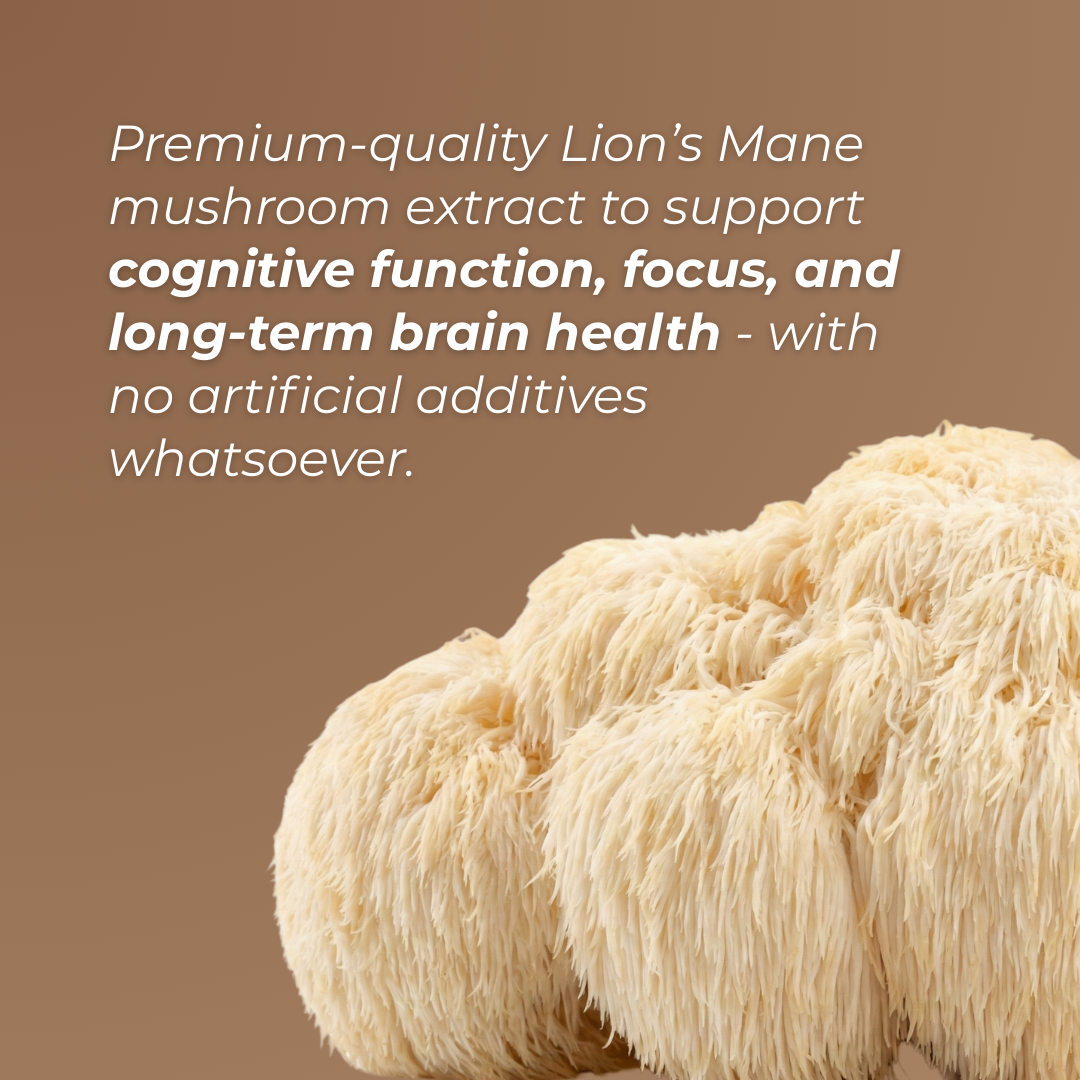 Each capsule provides 500mg premium quality Lion's Mane fruiting body extract, providing 30% Polysaccharides.