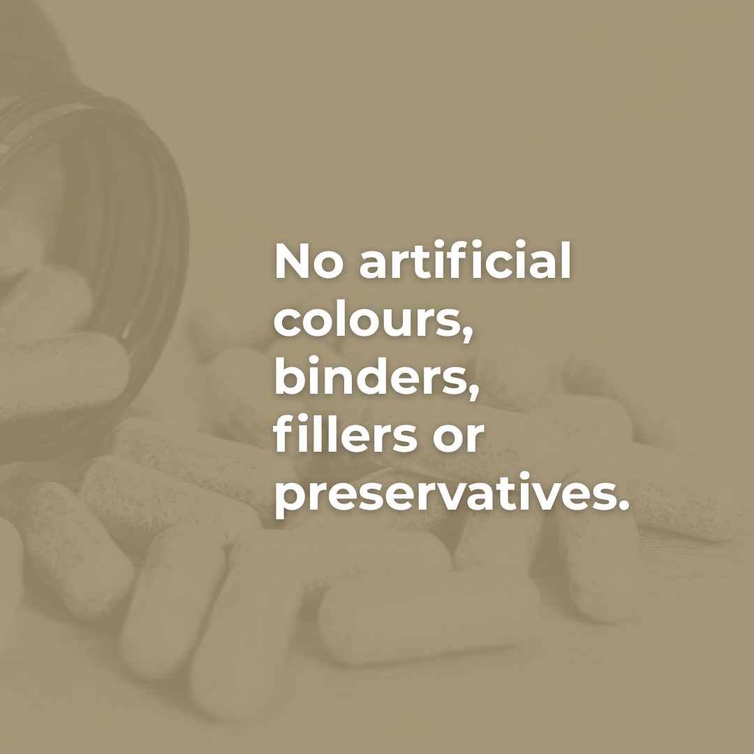 Contains only high-quality raw ingredients at meaningful dosages, with no artificial colours, binders, fillers, or preservatives.