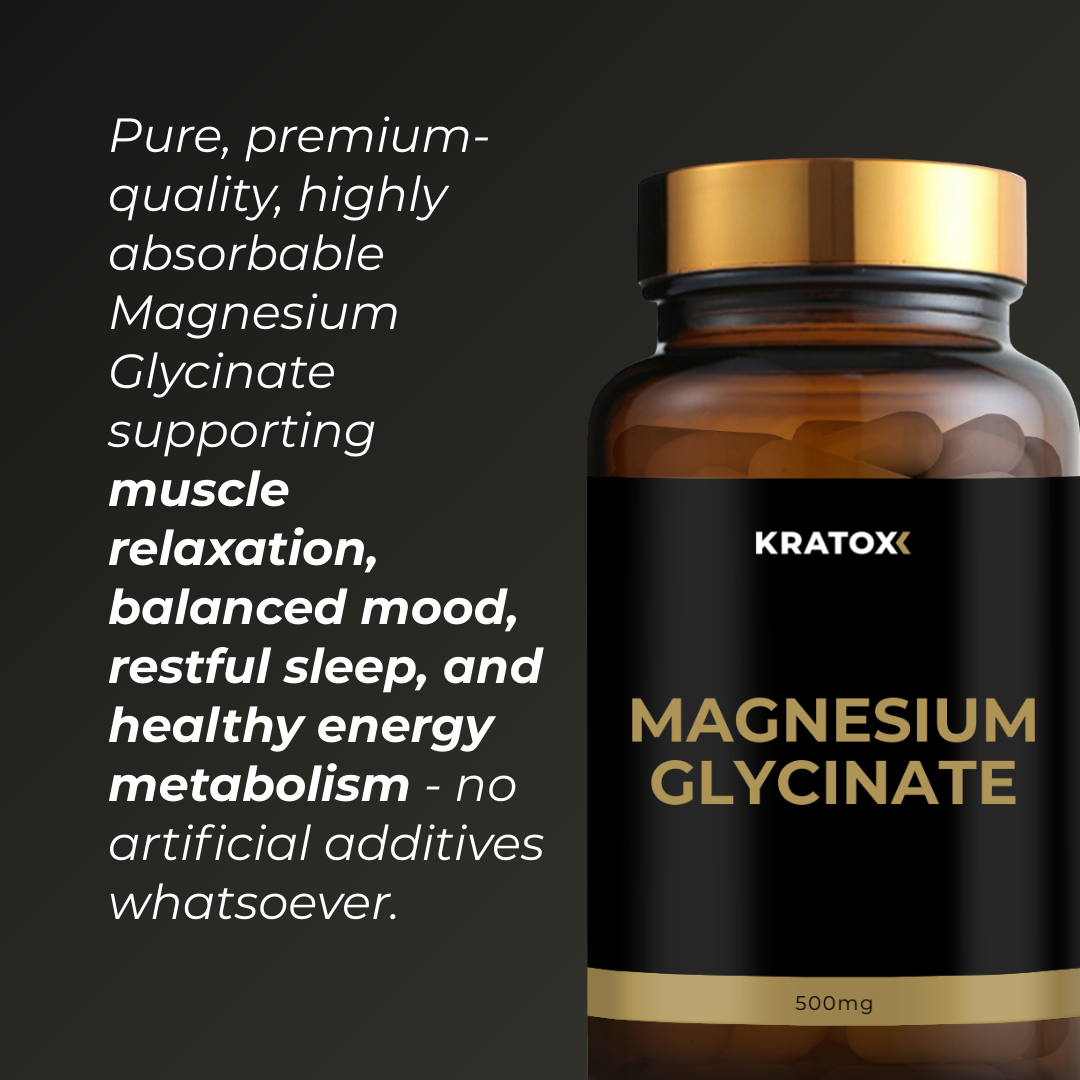 Kratox Magnesium Glycinate delivers highly absorbable magnesium to support relaxation, sleep quality, and muscle recovery. A gentle and effective form, ideal for daily use.