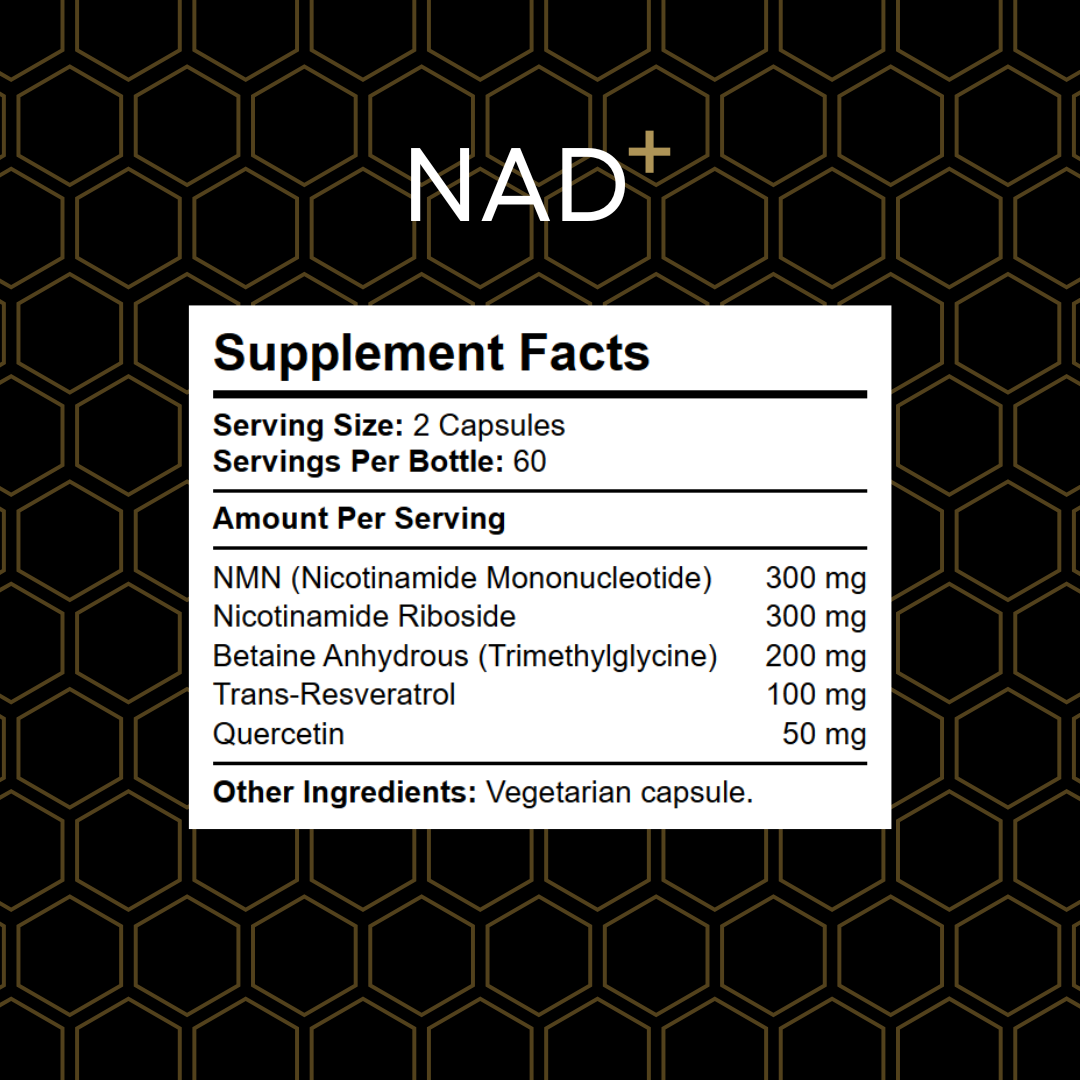 Betaine Anhydrous (Trimethylglycine) rounds out the blend by supporting methylation pathways, which are essential for the body’s ability to recycle NAD+ and maintain metabolic balance. The result is a comprehensive approach to age-defence, energy support, and optimal cellular health.