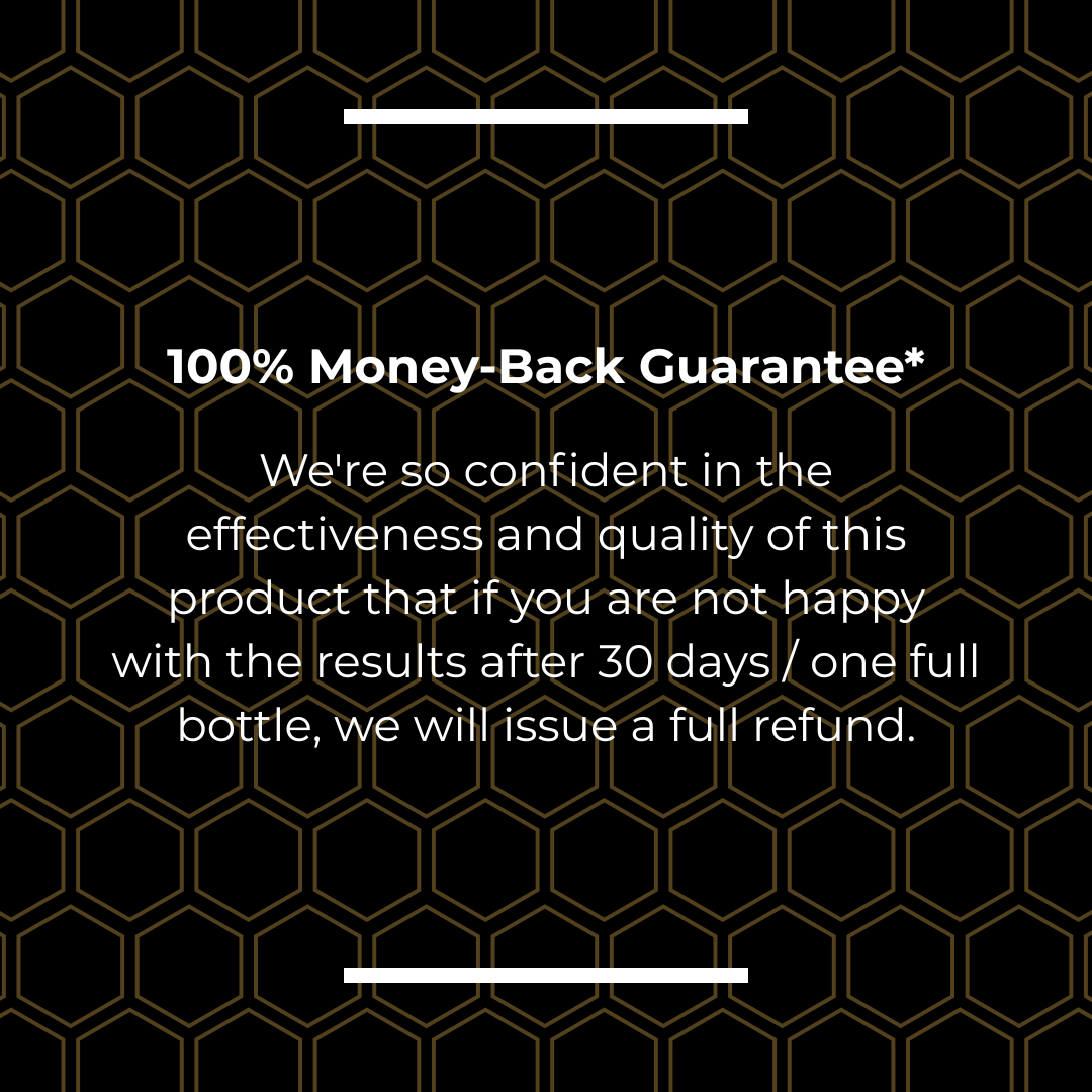 We're so confident in the effectiveness and quality of this product that if you are not happy with the results after 30 days / one full bottle, we will issue a full refund.