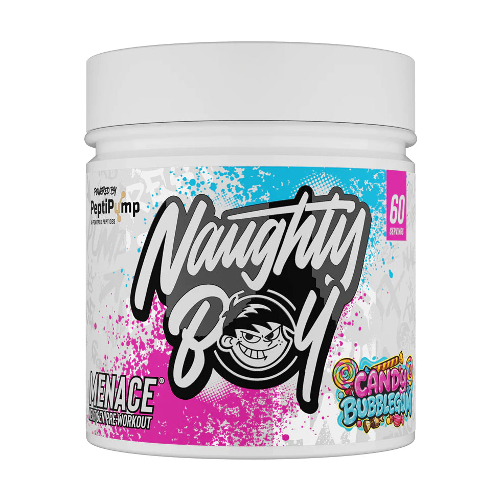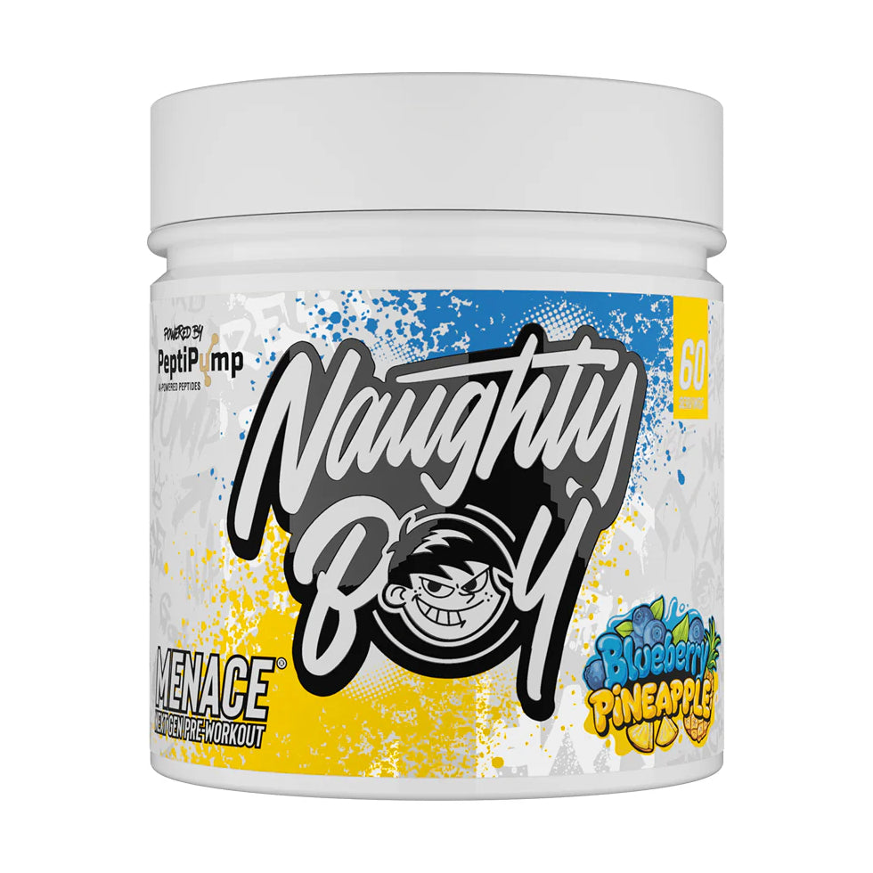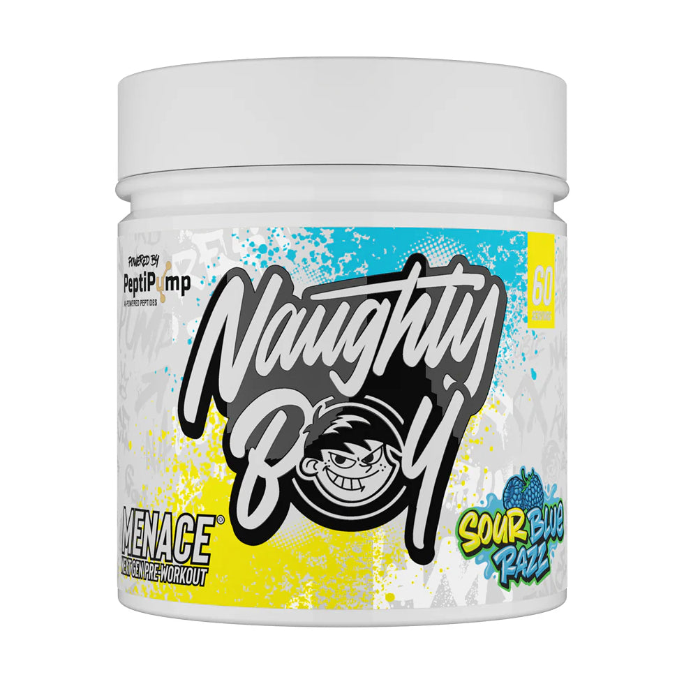 Power up your workouts with Naughty Boy Menace® V2! Designed for intense energy, razor-sharp focus, and skin-splitting pumps, this pre-workout formula is your ultimate training companion.