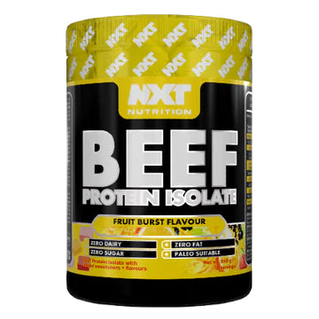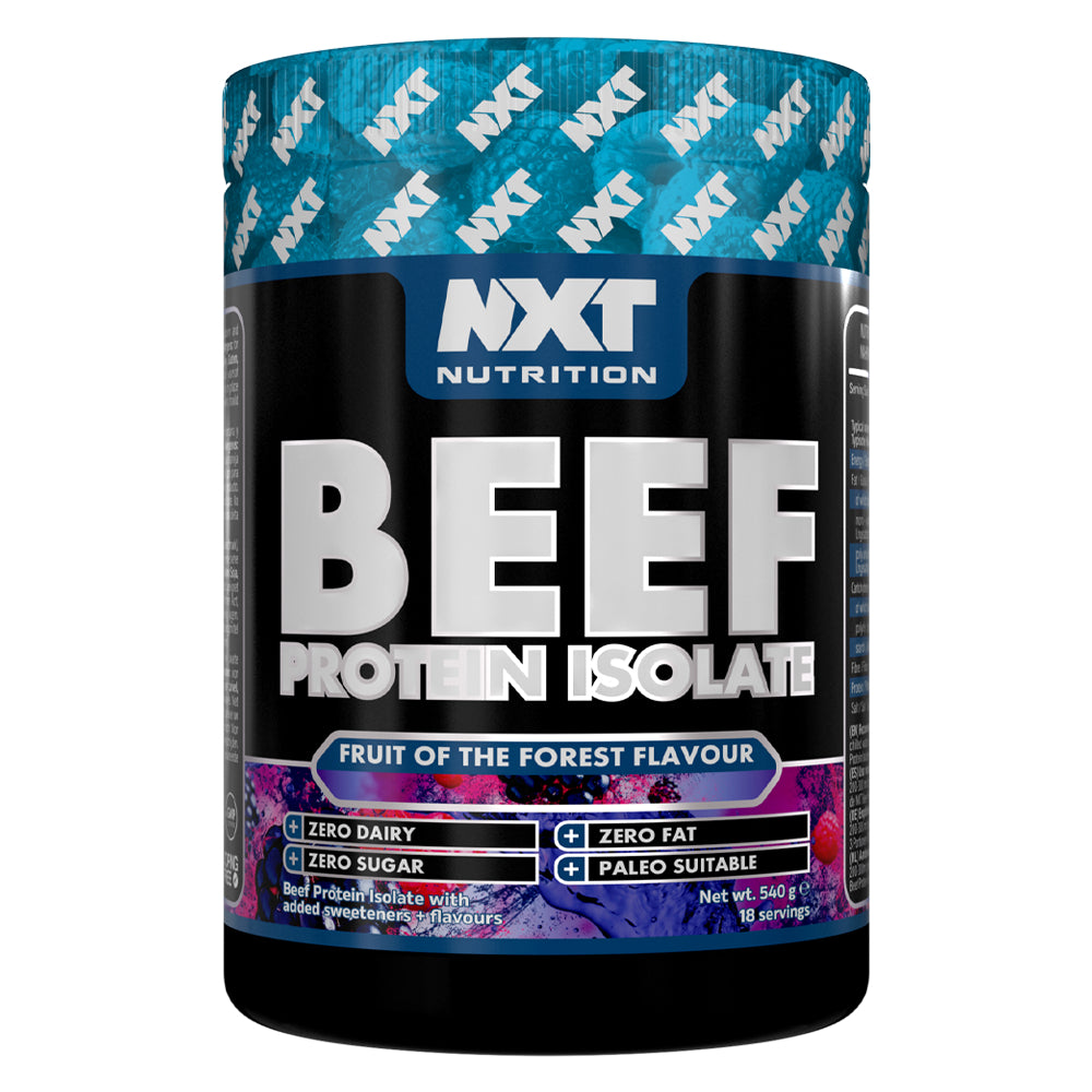 NXT Nutrition’s Beef Protein Isolate is an innovative, high-quality source of protein that is high in muscle-building amino acids and low in carbohydrates and fats (0 grams of each).