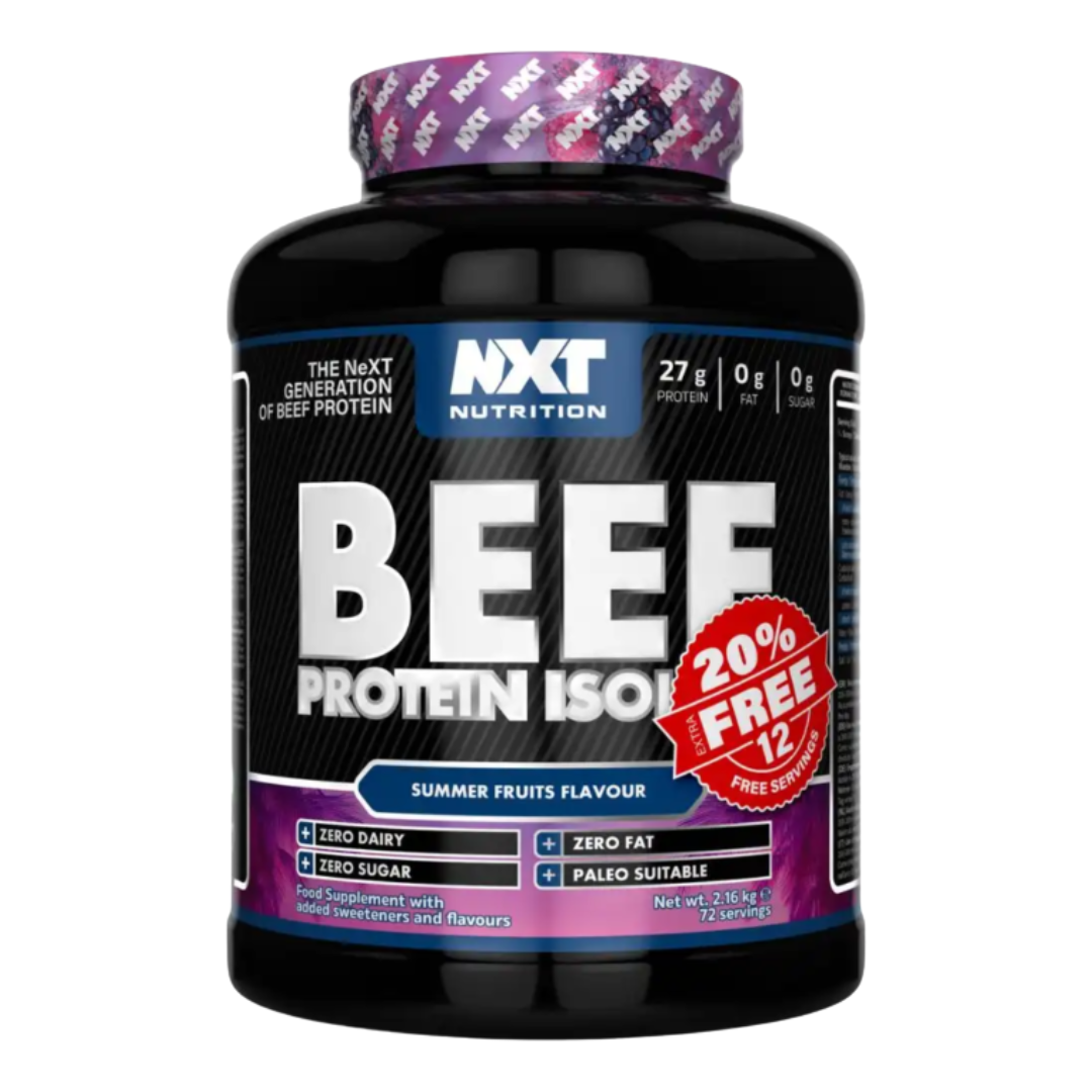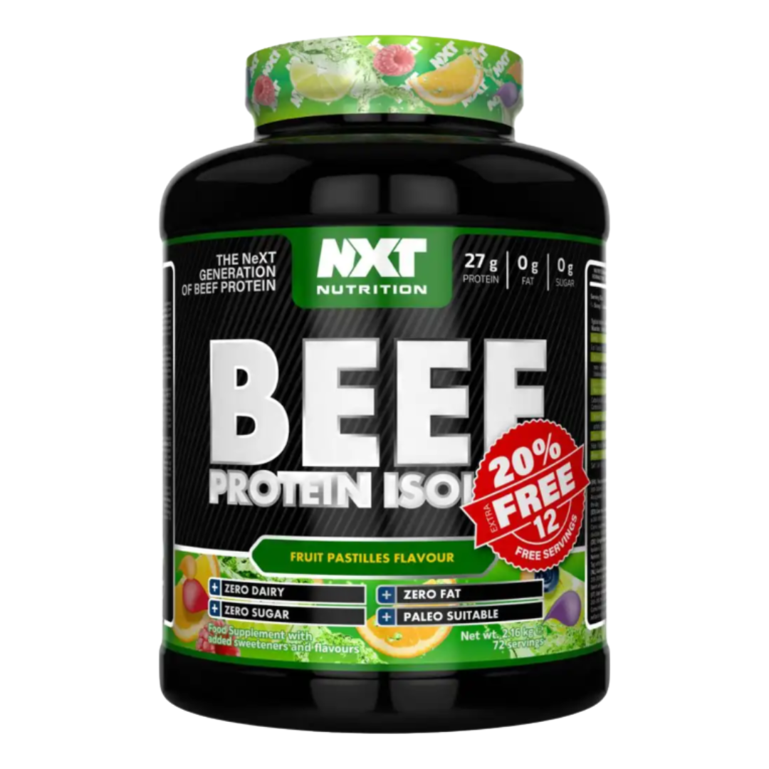 NXT Nutrition’s Beef Protein Isolate delivers an efficient, high-purity protein source designed to support lean muscle growth and post-exercise recovery. Each 30g serving provides ~27g protein with rock-bottom carbohydrate and fat, so you’re paying for protein—not extras.