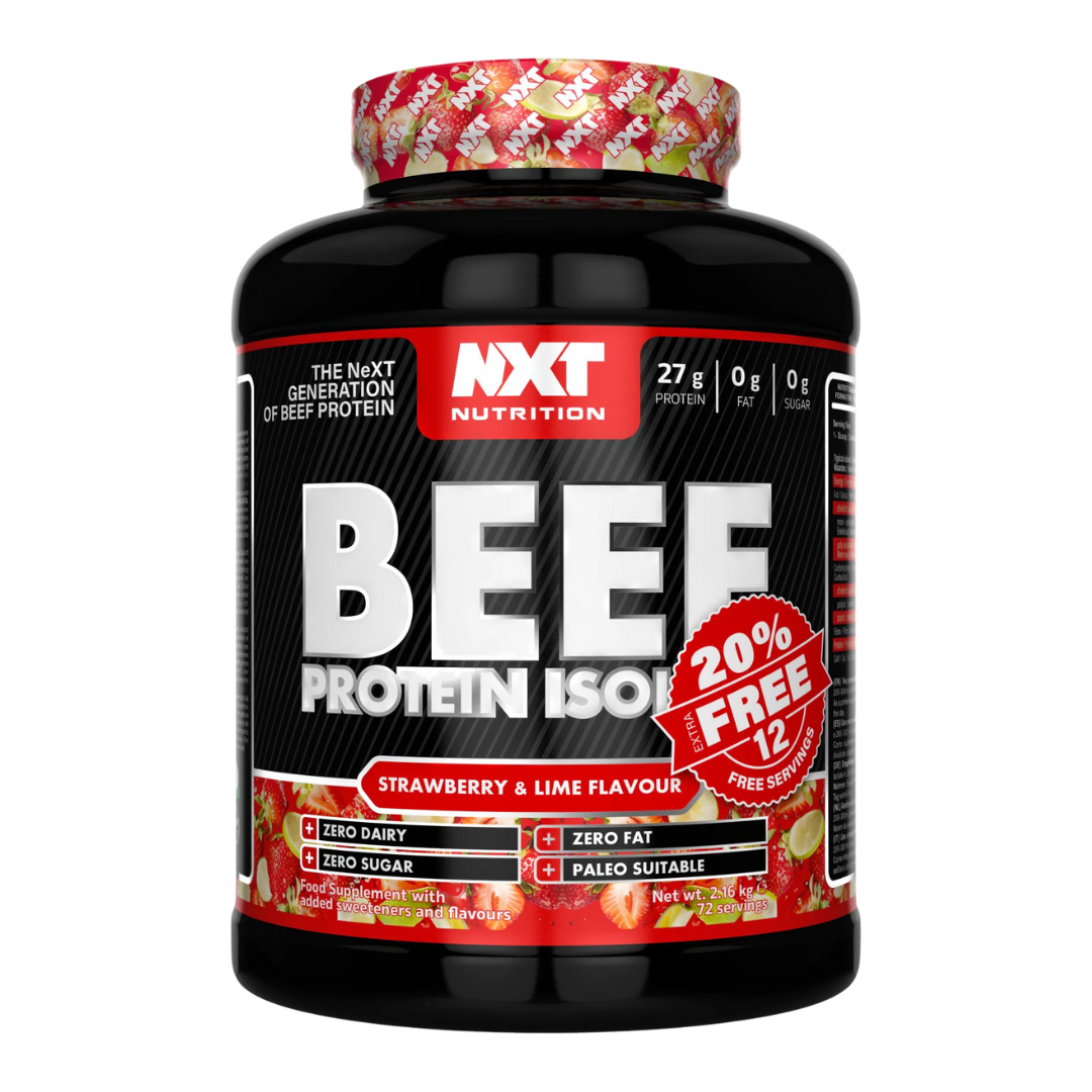 Build and maintain lean muscle with NXT Nutrition Beef Protein Isolate—a clean, dairy-free alternative to whey, now with 20% extra free for outstanding value.