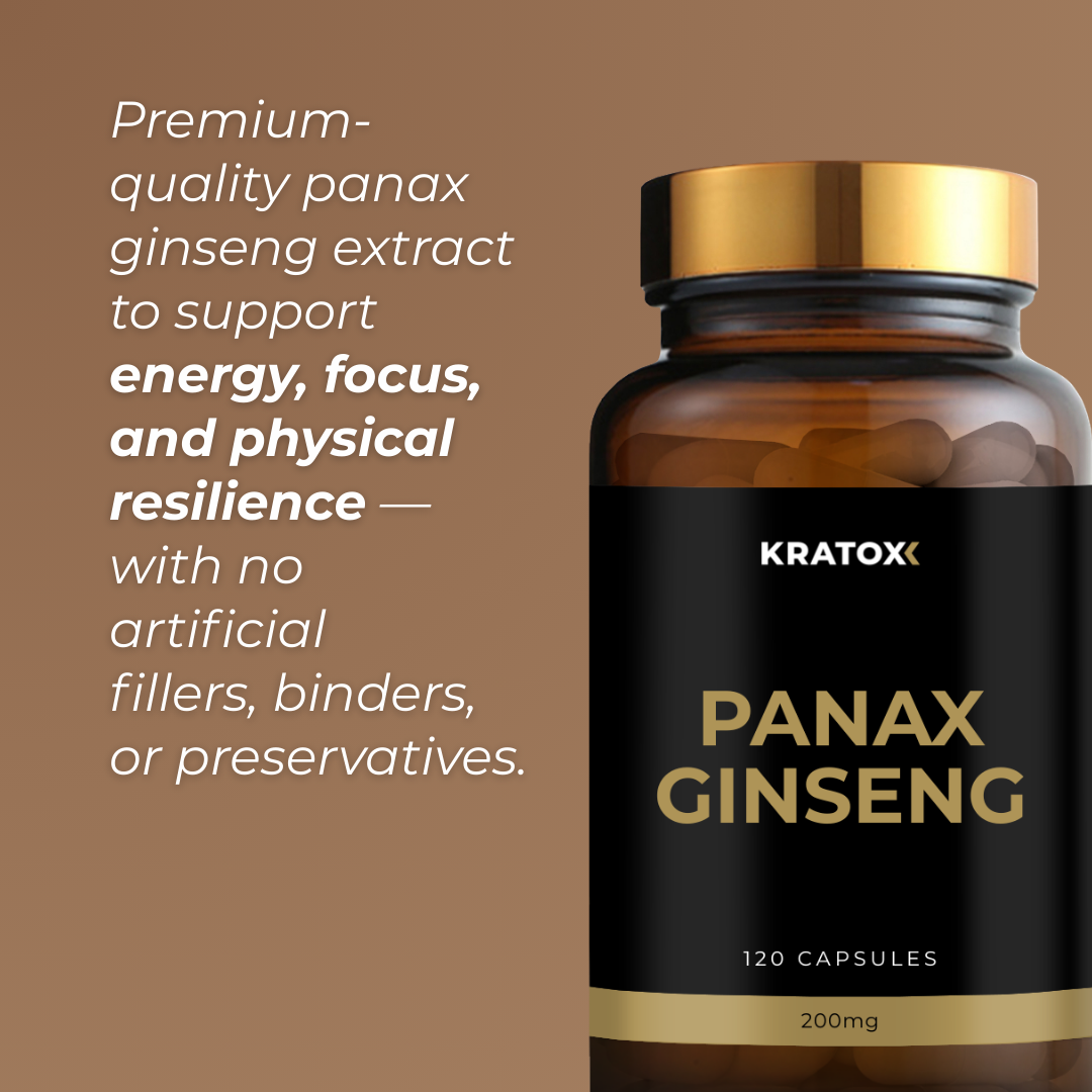 Kratox Panax Ginseng provides a carefully selected extract standardised to 7% ginsenosides, ensuring consistent potency and quality. This level of standardisation helps ensure each capsule delivers the key compounds most closely associated with ginseng’s benefits.