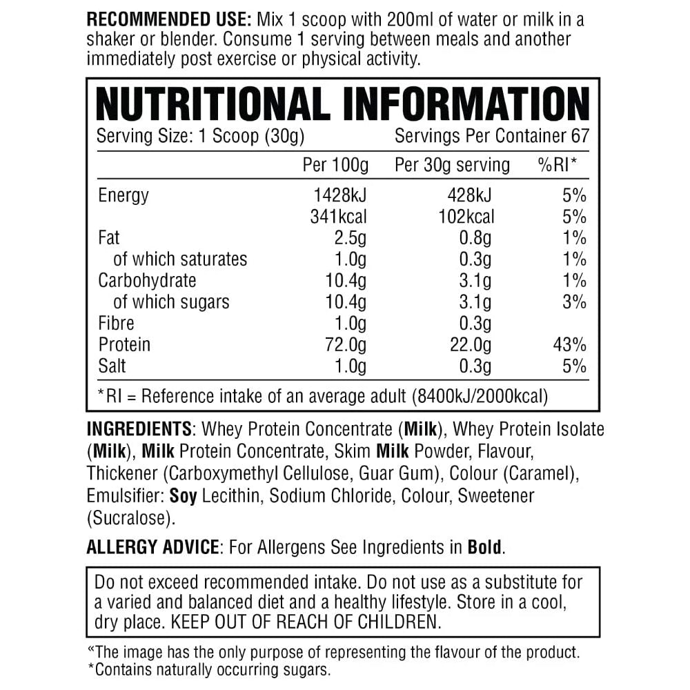 Chocotella flavour: Whey Protein Concentrate (Milk), Whey Protein Isolate (Milk), Milk Protein Concentrate, Skim Milk Powder, Flavouring, Reduced - Fat Cocoa Powder, Thickeners (Carboxymethyl cellulose, Guar Gum), Sodium Chloride, Emulsifier (Soy Lecithin), Sweetener (Sucralose).