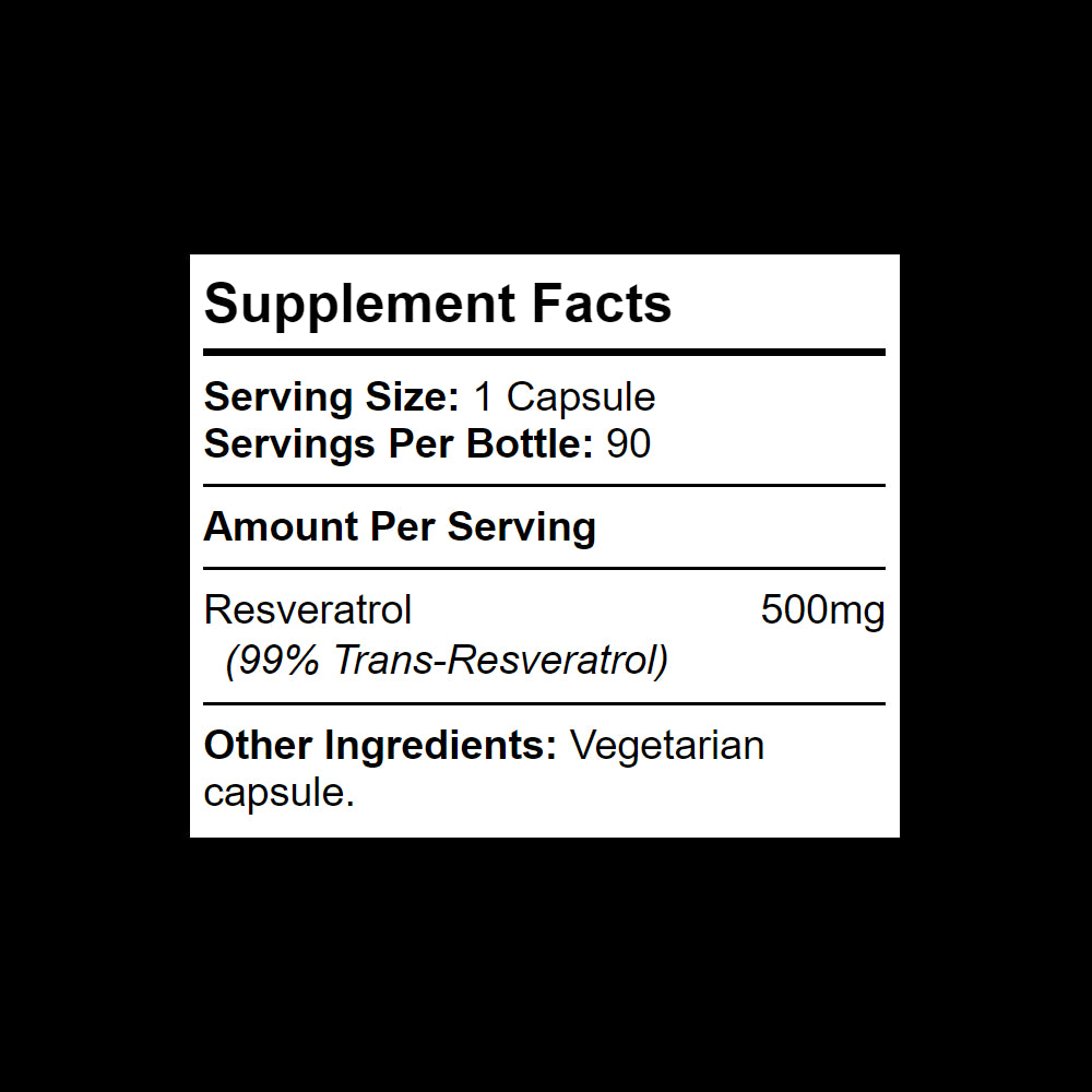 A premium, highly bioavailable form of resveratrol sourced for maximum purity and potency. Each capsule delivers 500mg of active trans-resveratrol, the most biologically effective form, for optimal antioxidant and cellular support.