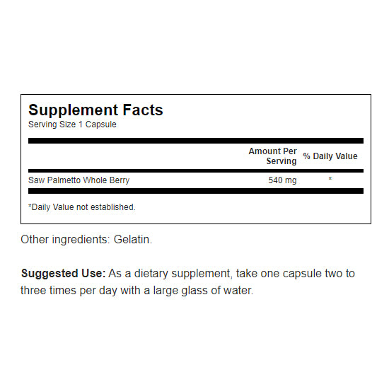 Swanson Saw Palmetto capsules supply 540 mg of premium-grade whole berry powder in a full spectrum format so you get all the constituents of saw palmetto just as it's found in nature.