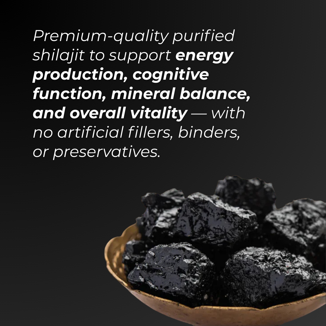 Shilajit is a naturally occurring mineral-rich resin formed over centuries from decomposed plant matter and found primarily in the Himalayan and Altai mountain ranges. Rich in over 80 trace minerals and bioactive compounds, its key component — Fulvic Acid — is known for improving nutrient absorption, mitochondrial efficiency, and overall vitality.