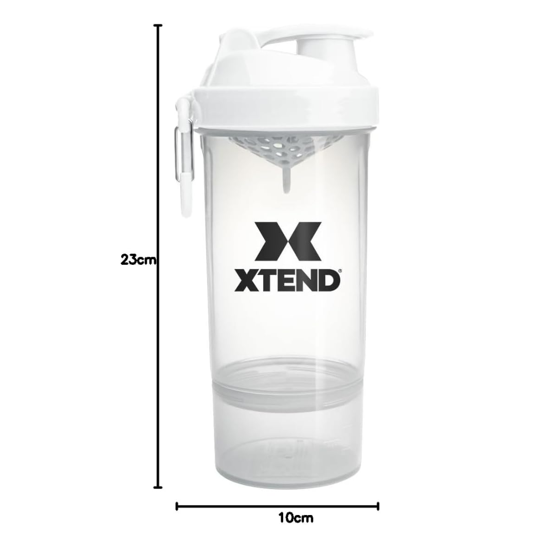 The XTEND SmartShake 800ml shaker is built for convenience and reliable performance. Its generous capacity comfortably fits pre-workout, intra-workout, or post-workout shakes, as well as simple water or electrolyte drinks. The translucent body and printed volume markings make it easy to measure liquids accurately, helping you mix your supplements to your preferred strength every time.