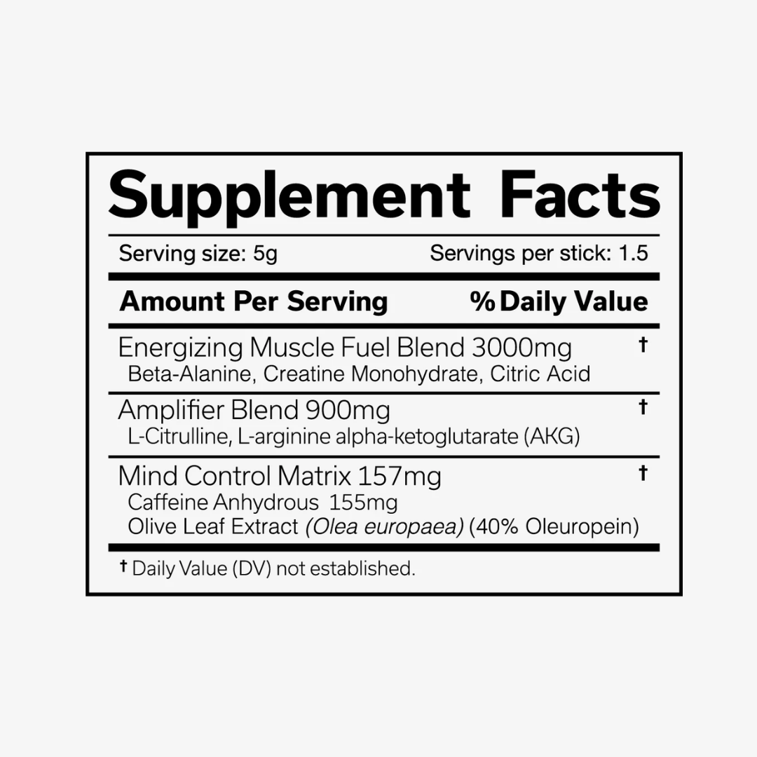 Mix 1 stick with 150-250ml of cold water and consume prior to exercise. Read warnings before use. Never exceed 2 sticks in any 24 hour period.
