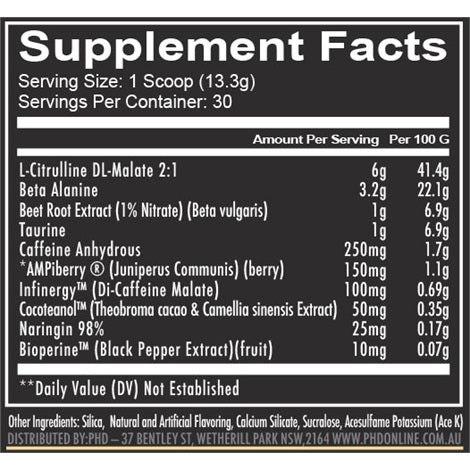 A pre-workout rarely has pump enhancers that give you skin-splitting pumps in addition to high doses of stim-based ingredients. Total War has a significant amount of 6g of citrulline malate and 1g of agmatine sulfate, which help to produce long-lasting muscle pumps while training, which are essential for connecting muscles.