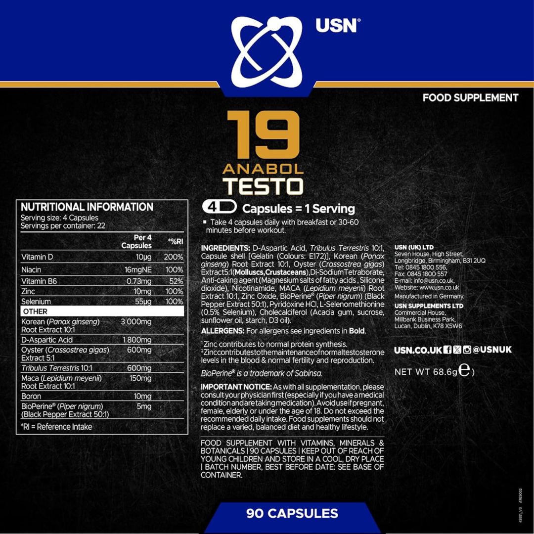 Backed by the trusted quality standards of USN, 19 Anabol-Testo is formulated with both safety and effectiveness in mind, giving you confidence in every capsule.
