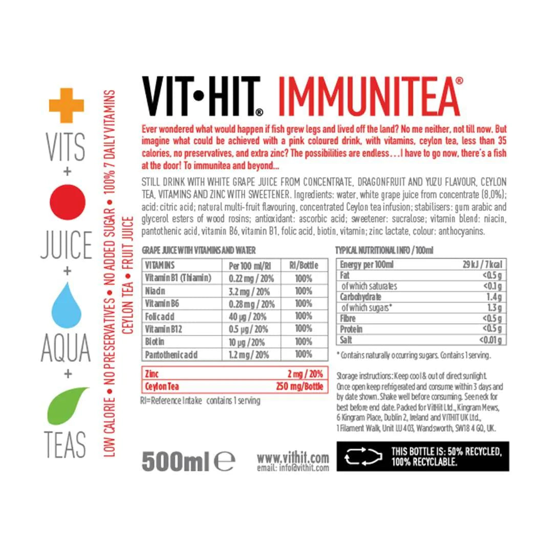 IMMUNITEA is a delicious juice made with Dragonfruit, Yuzu, and Ceylon tea that improves health. Additionally, the natural teas we use contribute 4 mg of caffeine to each bottle of IMMUNITEA. An average cup of English tea contains 55 mg of caffeine, for comparison.