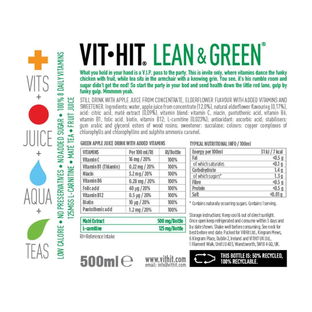 LEAN & GREEN is a mouthwatering combination of Maté Tea, apple, and elderflower for a crisp, fresh flavour. Additionally, the natural teas contribute 14 milligrams of caffeine to each bottle of LEAN & GREEN. An average cup of English tea contains 55 mg of caffeine, for comparison.