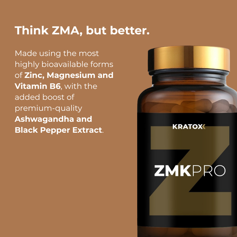 Enhance muscle recovery, sleep quality, and testosterone support with Kratox ZMK Pro — a clinically dosed blend of Zinc Aspartate, Magnesium Glycinate, Vitamin B6, and Ashwagandha, optimised with Piperine for superior absorption.
